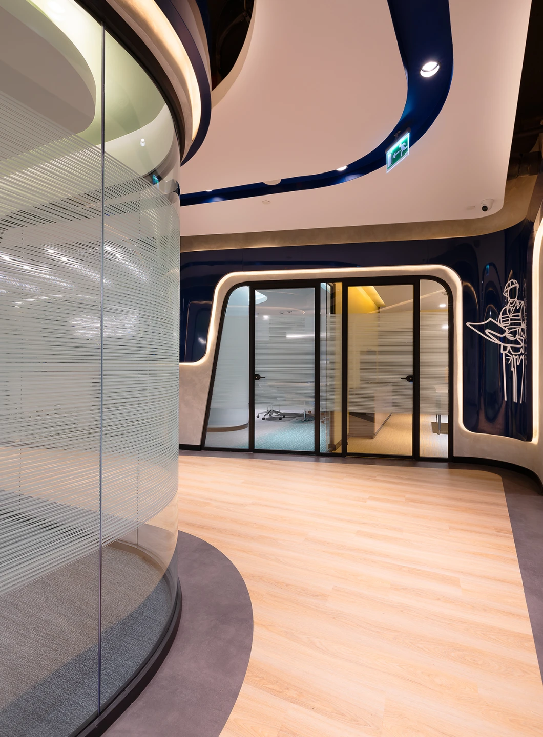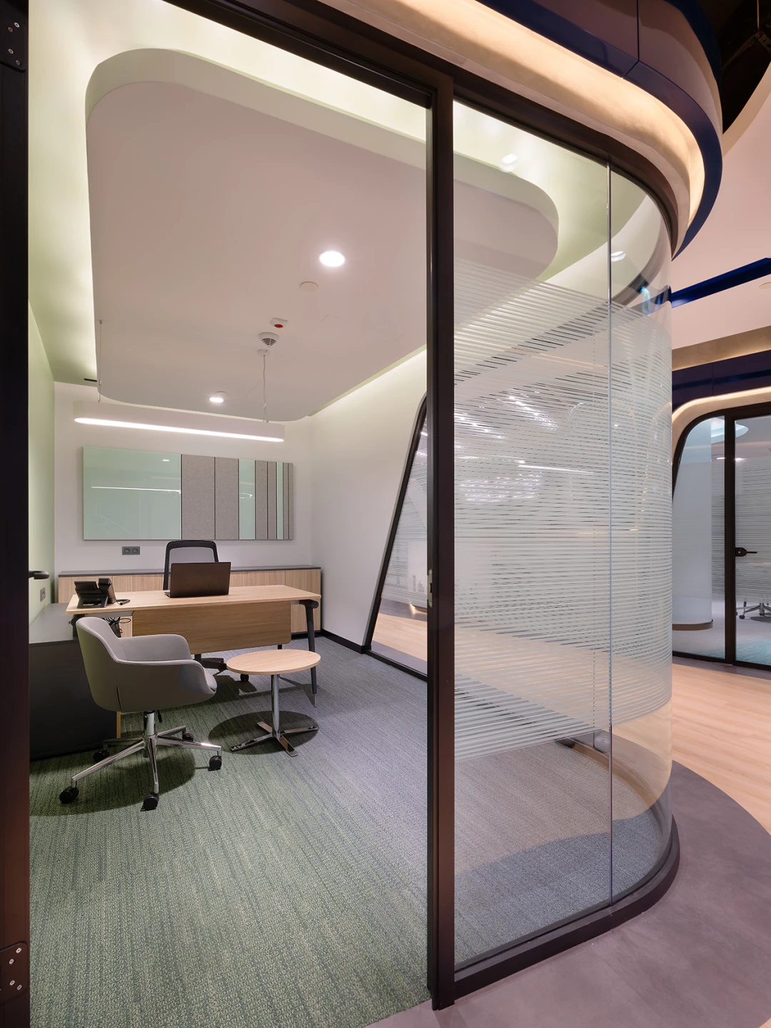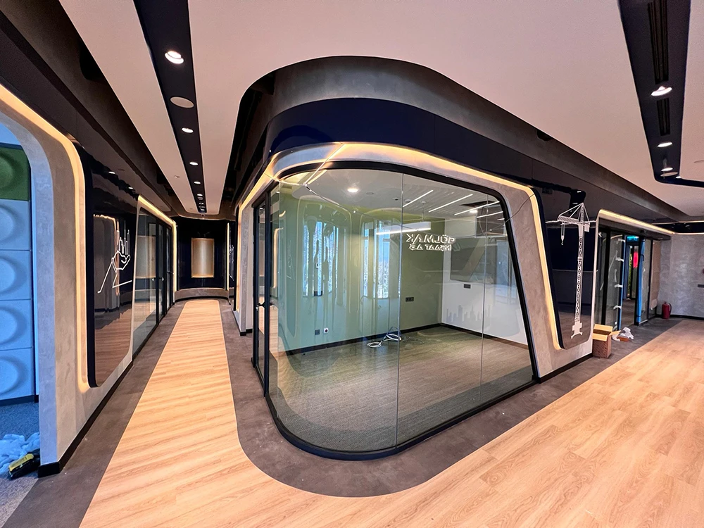 Özel üretim bölme sistemimizle proje tasarımına uyum sağlanmıştır. Akıllı cam filmi ile cam bölmelere fonksyonellik kazandırılmıştır.