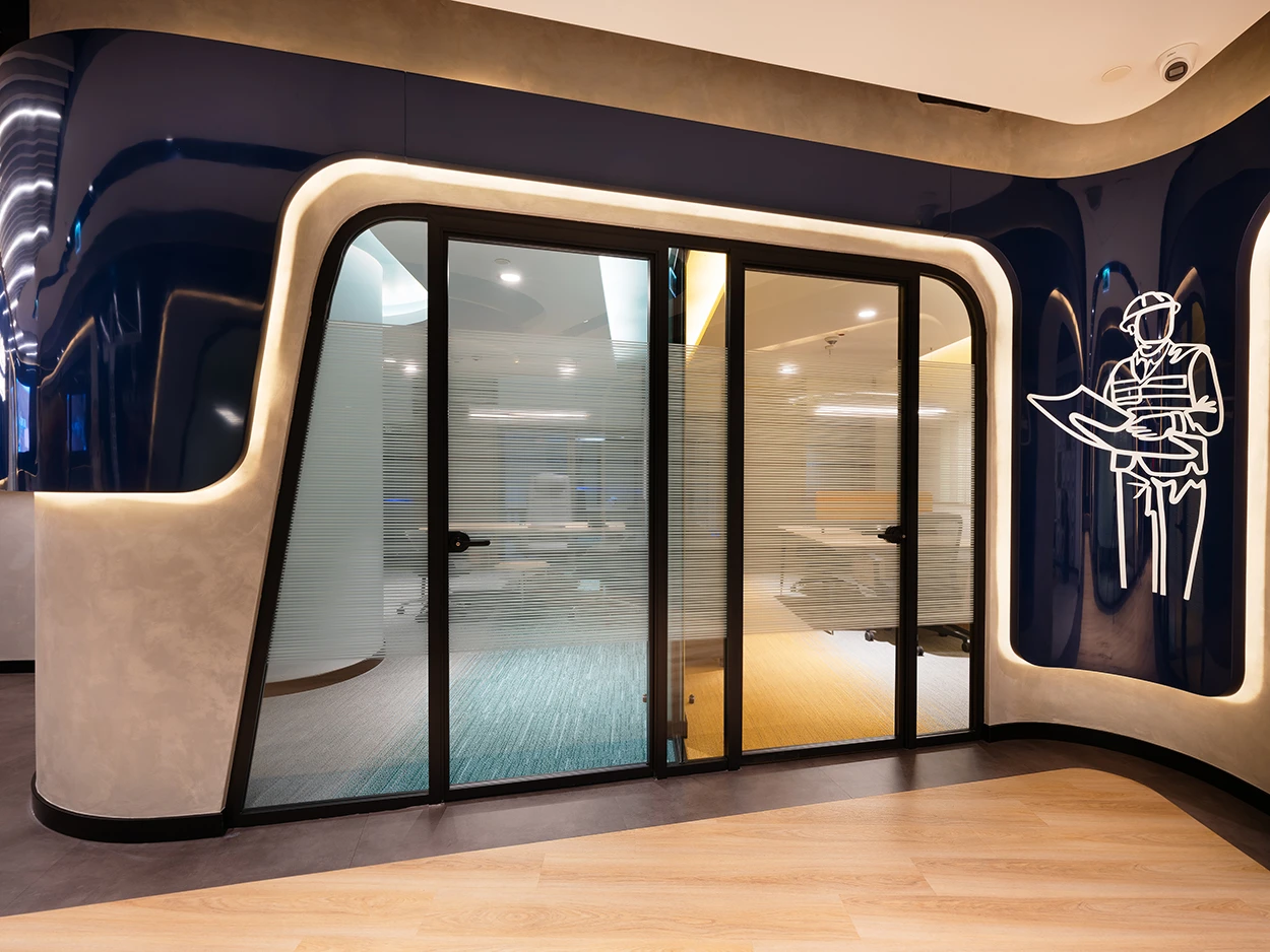 Bu projede uygulanan cam bölme sistemi, ofis alanına çağdaş ve profesyonel bir kimlik kazandırmıştır. Şeffaf tasarım diliyle ferahlık sağlanırken, kurumsal kullanım ihtiyaçları ön planda tutulmuştur.