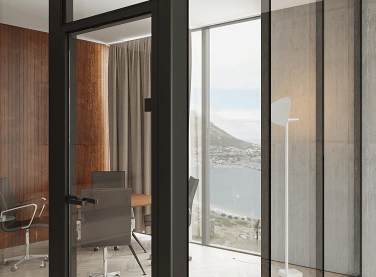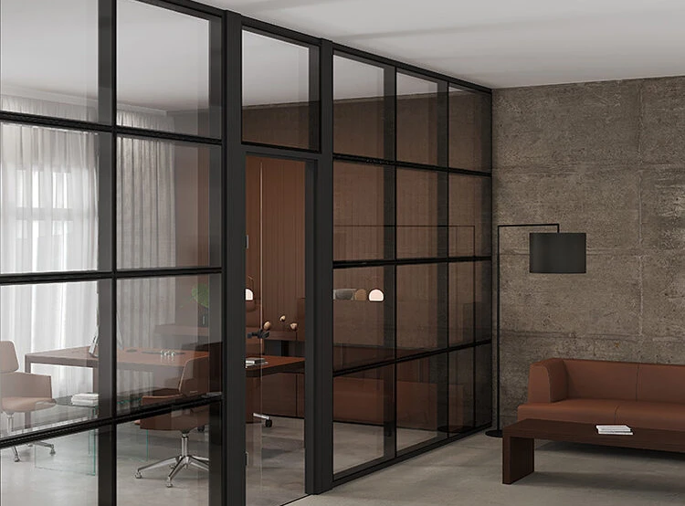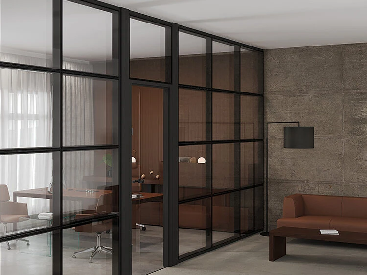 Grande Flush, ofislerde şeffaflık efekti yaratır, görsel bütünlük sağlar ve modern ofis konseptini vurgular. Alüminyum çerçeve ve cam birleşimlerinde derinlik hissi oluşturan sistem, yüksek cam duvar çözümleri ile mekânlara zenginlik katar. Şeffaf çift camlı modüller, isteğe bağlı stor perdeler veya cam film ile görsel gizlilik sunar. Akustik ve kumaş kaplamalı paneller entegrasyonu sağlar.