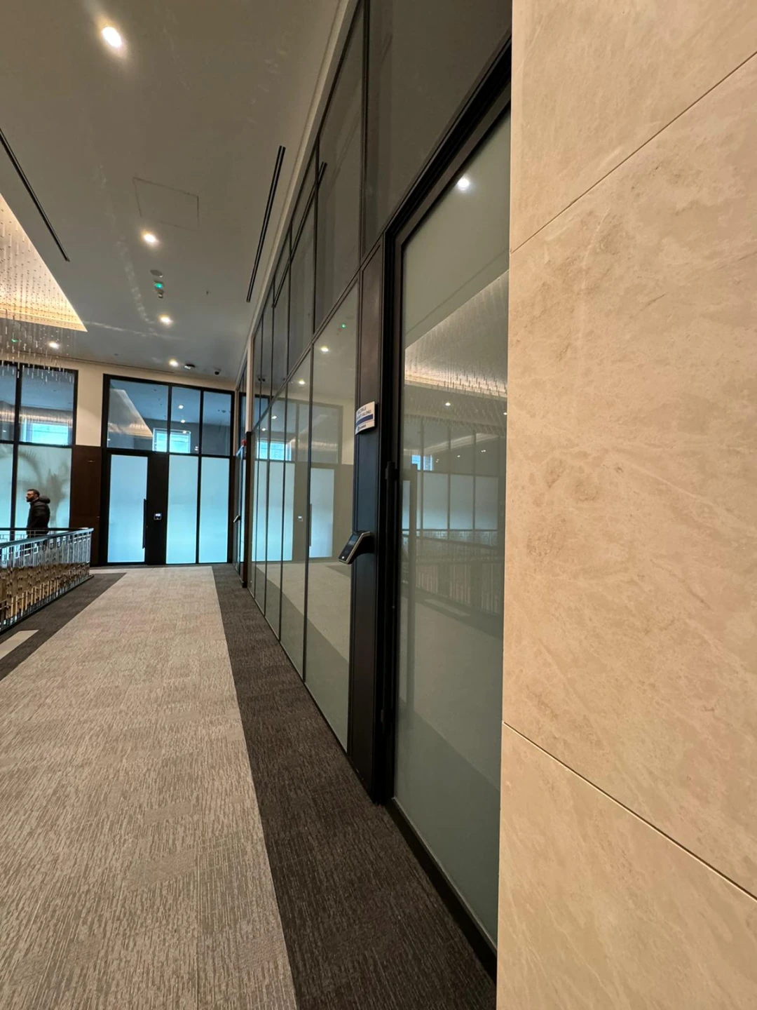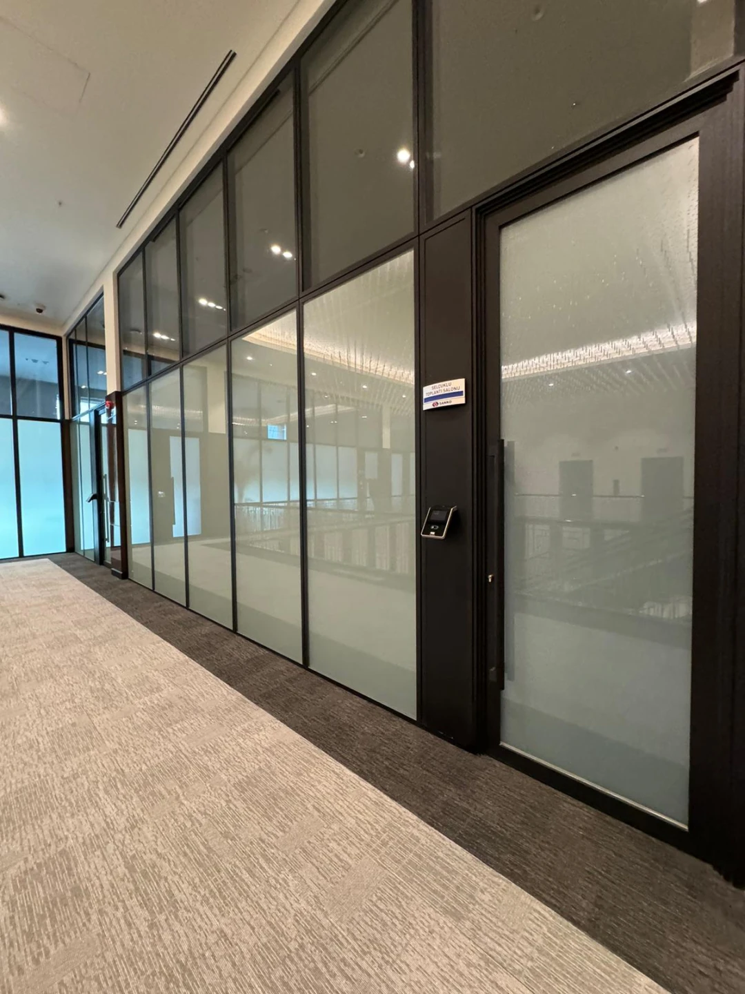 Yüksekliğin 6 metreyi bulduğu bu projede, Grande ürünümüzü güçlendirerek çift taraf akustik lamineli camlar ile uyguladık. Sonucunda hem tasarıma uygun hem de işlevsel bölme duvarlar projeye kazandırıldı.